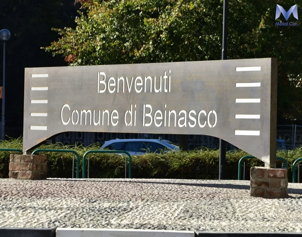 Metal.Car. ha realizzato un Pannello Pubblicitario per il Comune di Beinasco in provincia di Torino, che rappresenta una struttura composta da lamiere in corten e in acciaio inossidabile situata sulla prima rotonda alle porte paese, come augurio di Benvenuto.
