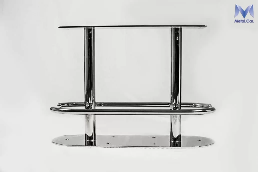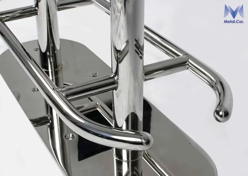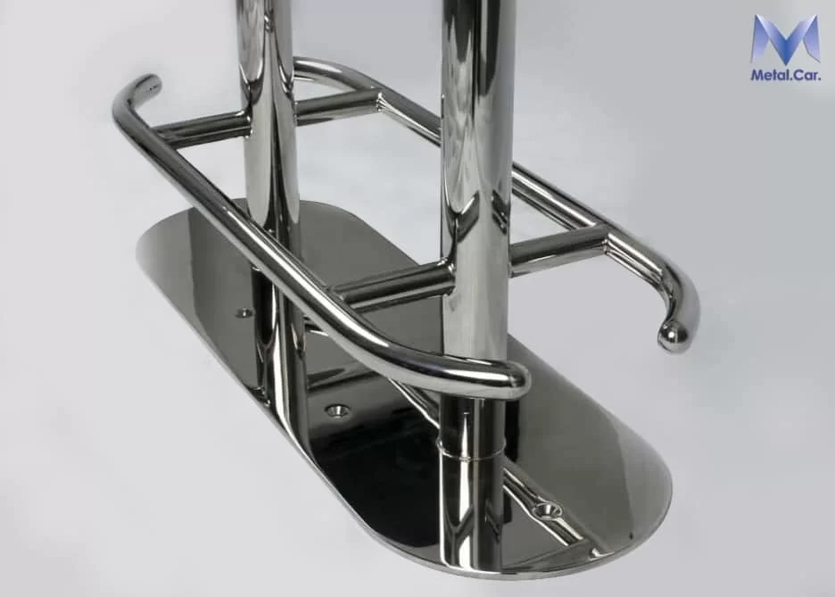 Sgabello nautico in acciaio inox lucidato a specchio realizzato per l’esterno di barche, gommoni e yacht.